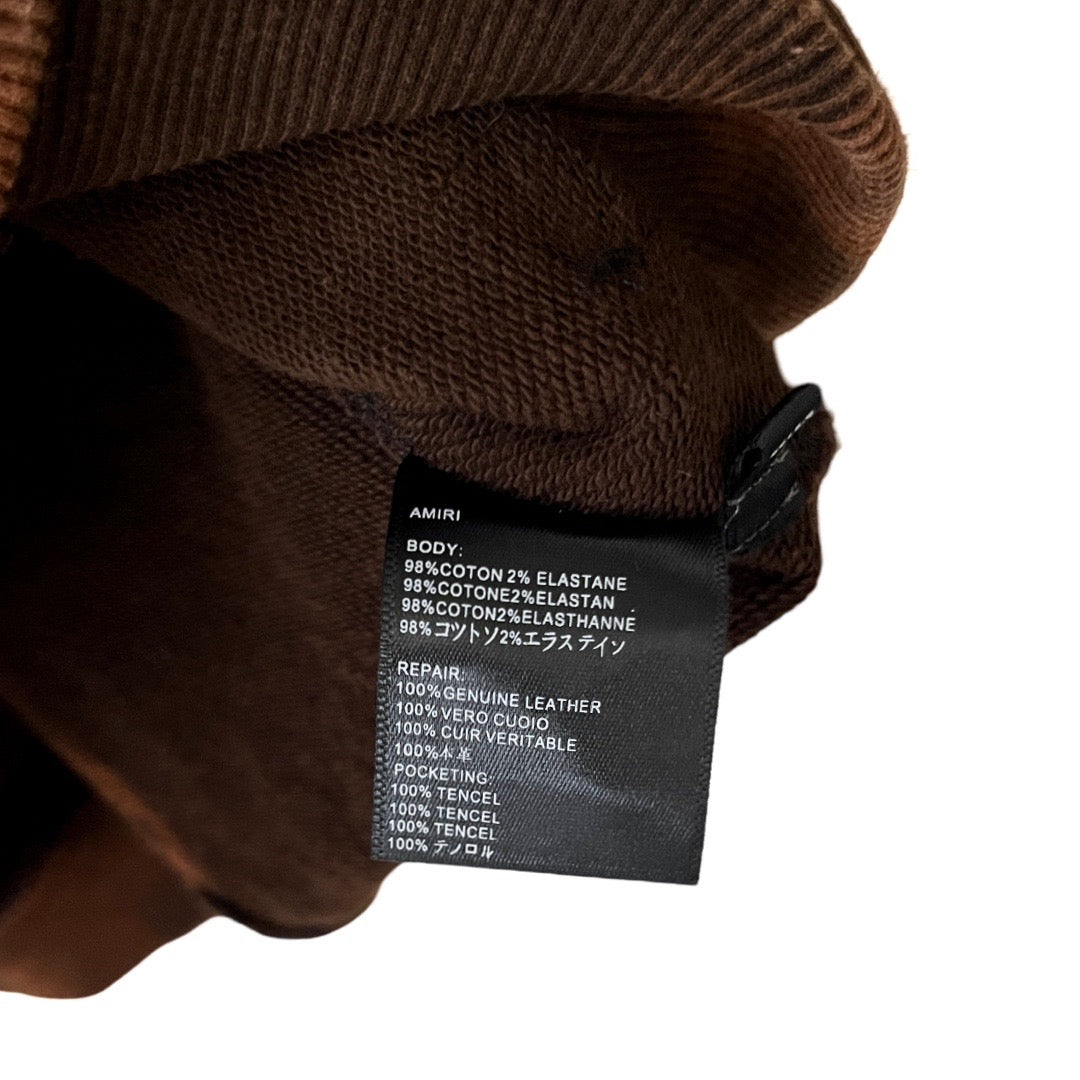 This is a custom, 1 of 1, AMIRI terry cotton hoodie. The hoodie has a midweight hand feel and a comfortable on-body wear.