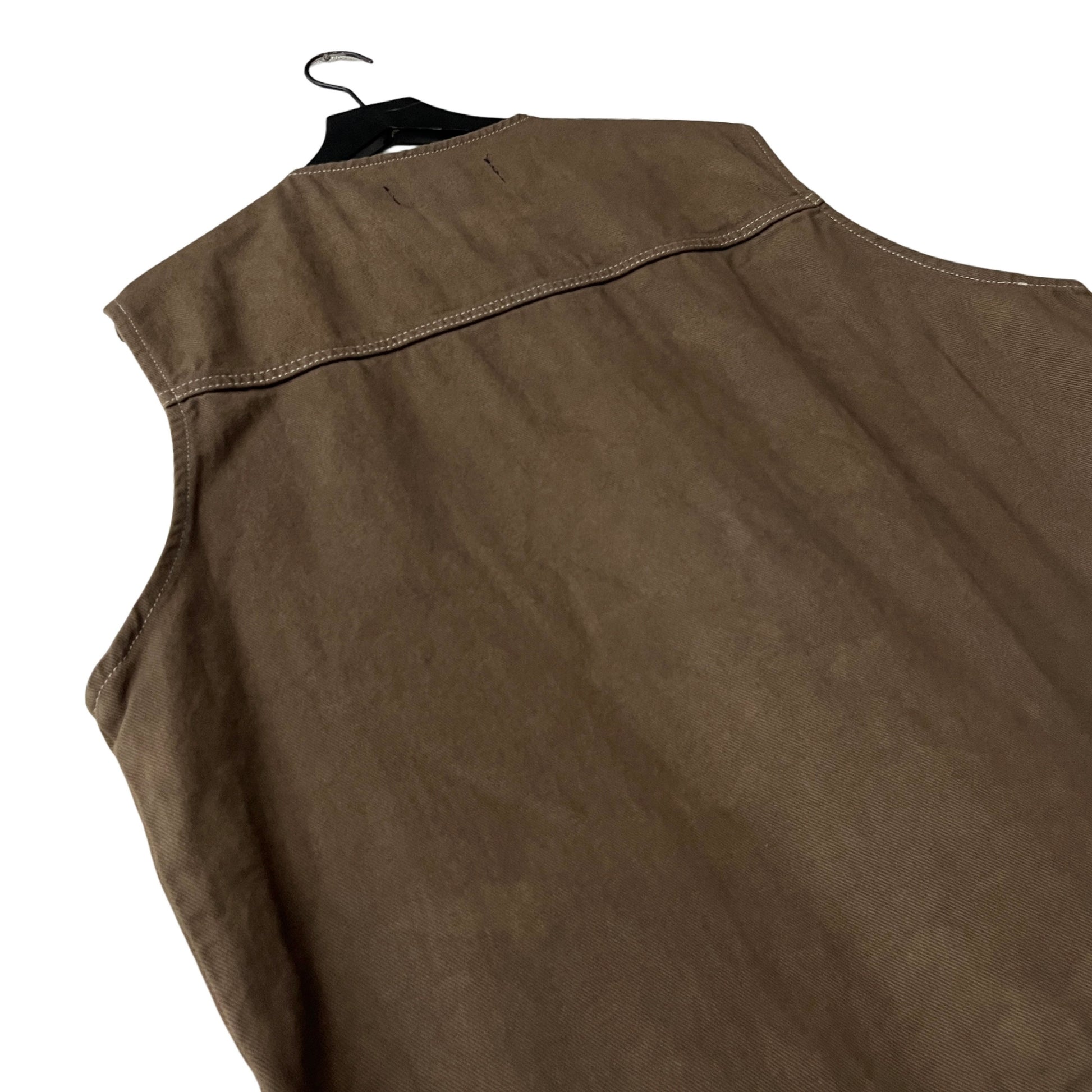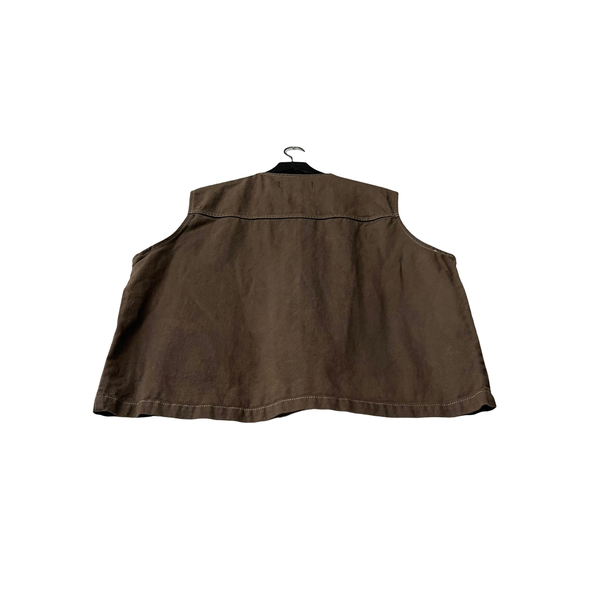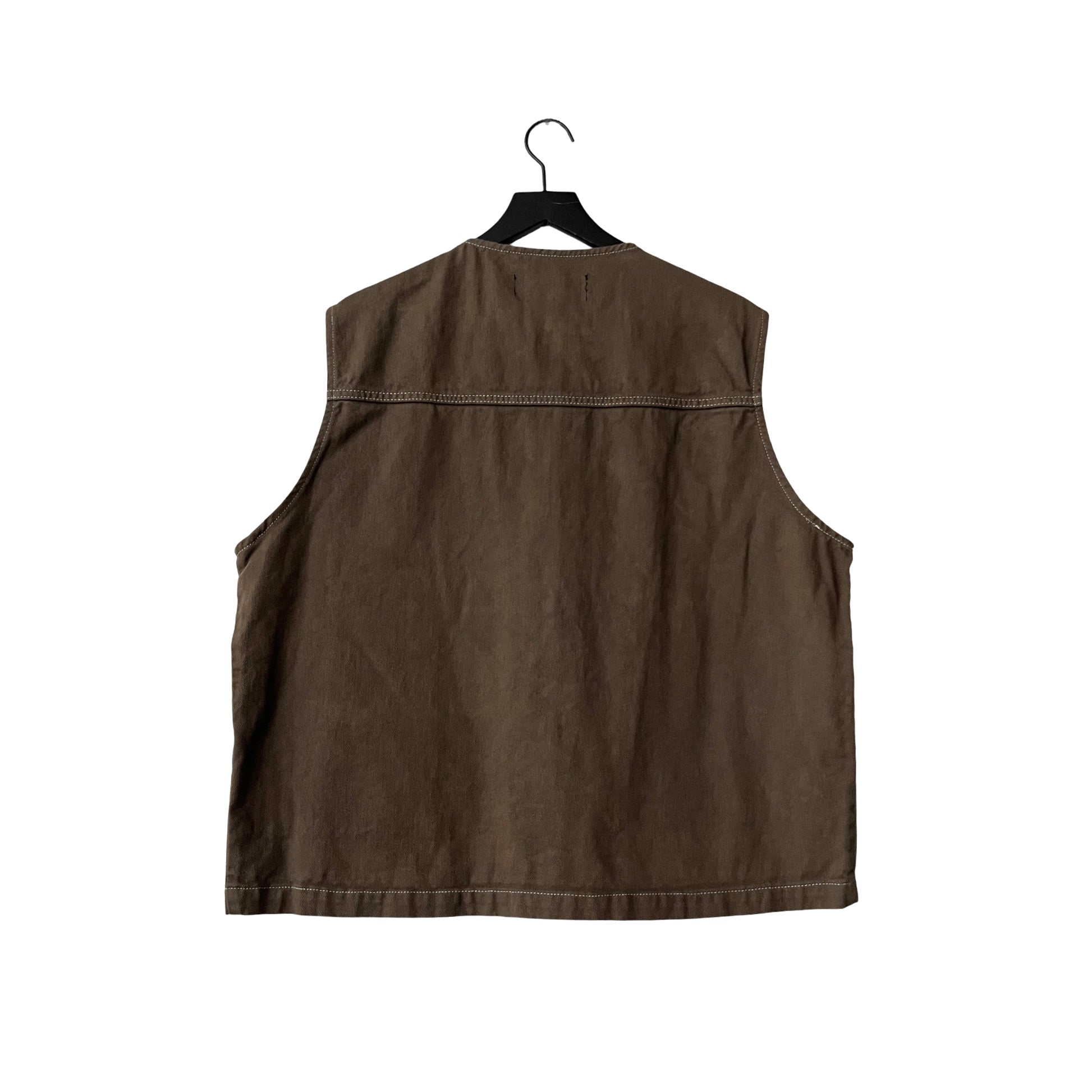 This canvas chore vest has a lightweight, minimalist structure, and is a great compliment layer for pairing with a tee, crewneck, hoodie, or even as a midlayer piece underneath a larger coat.