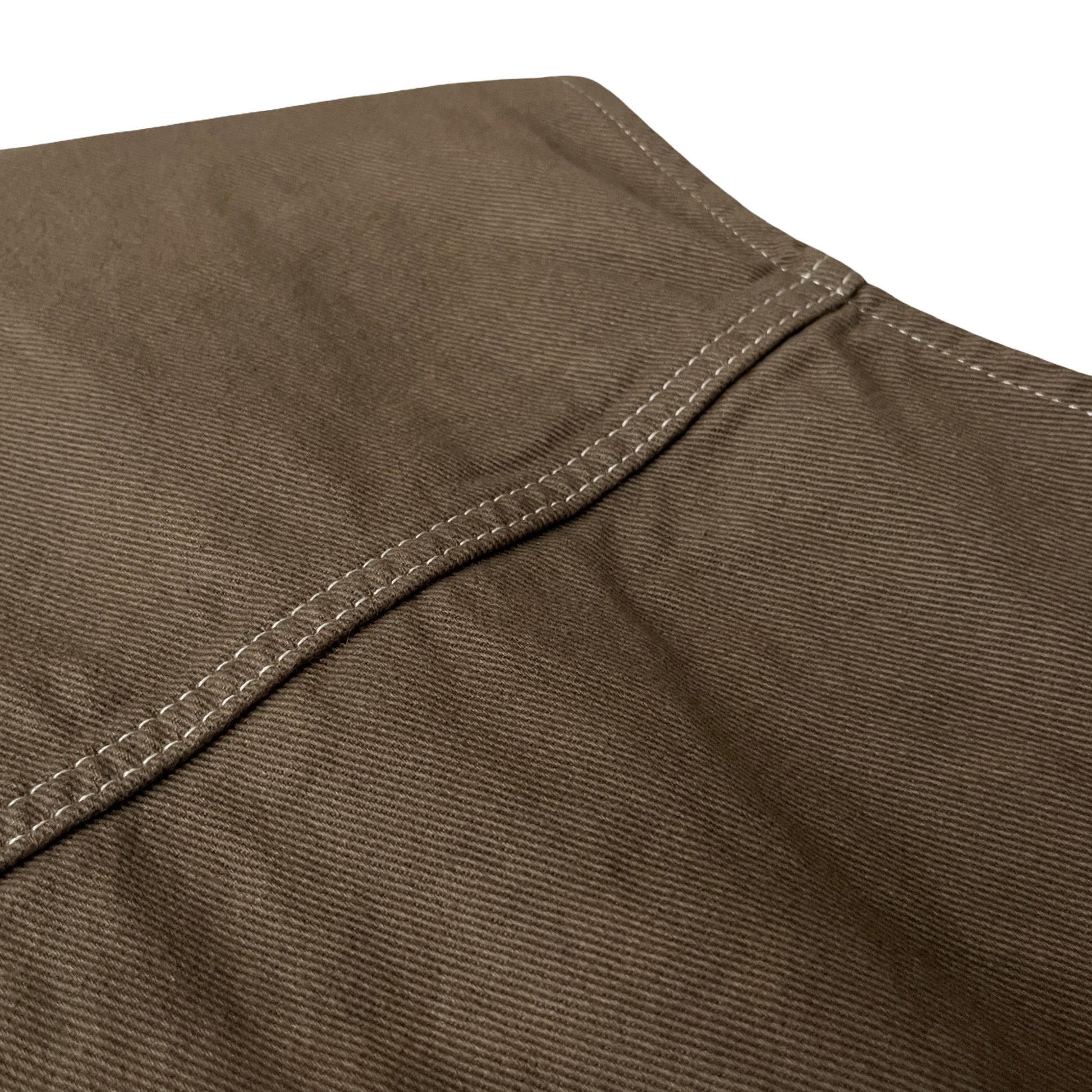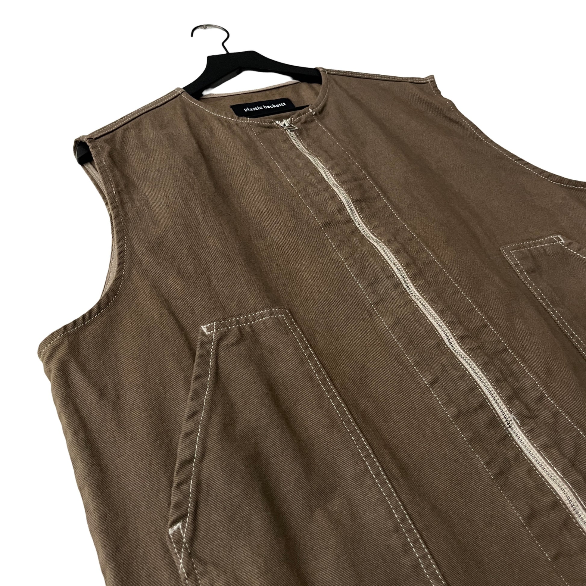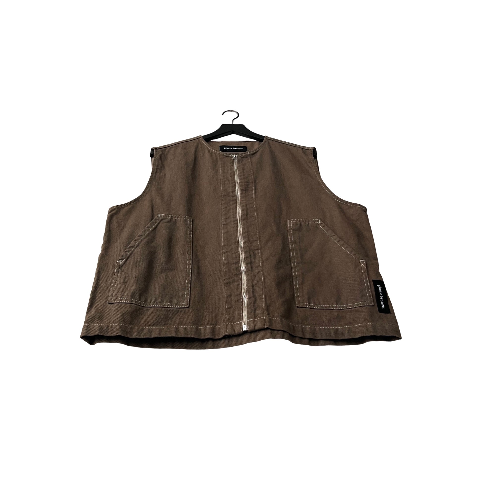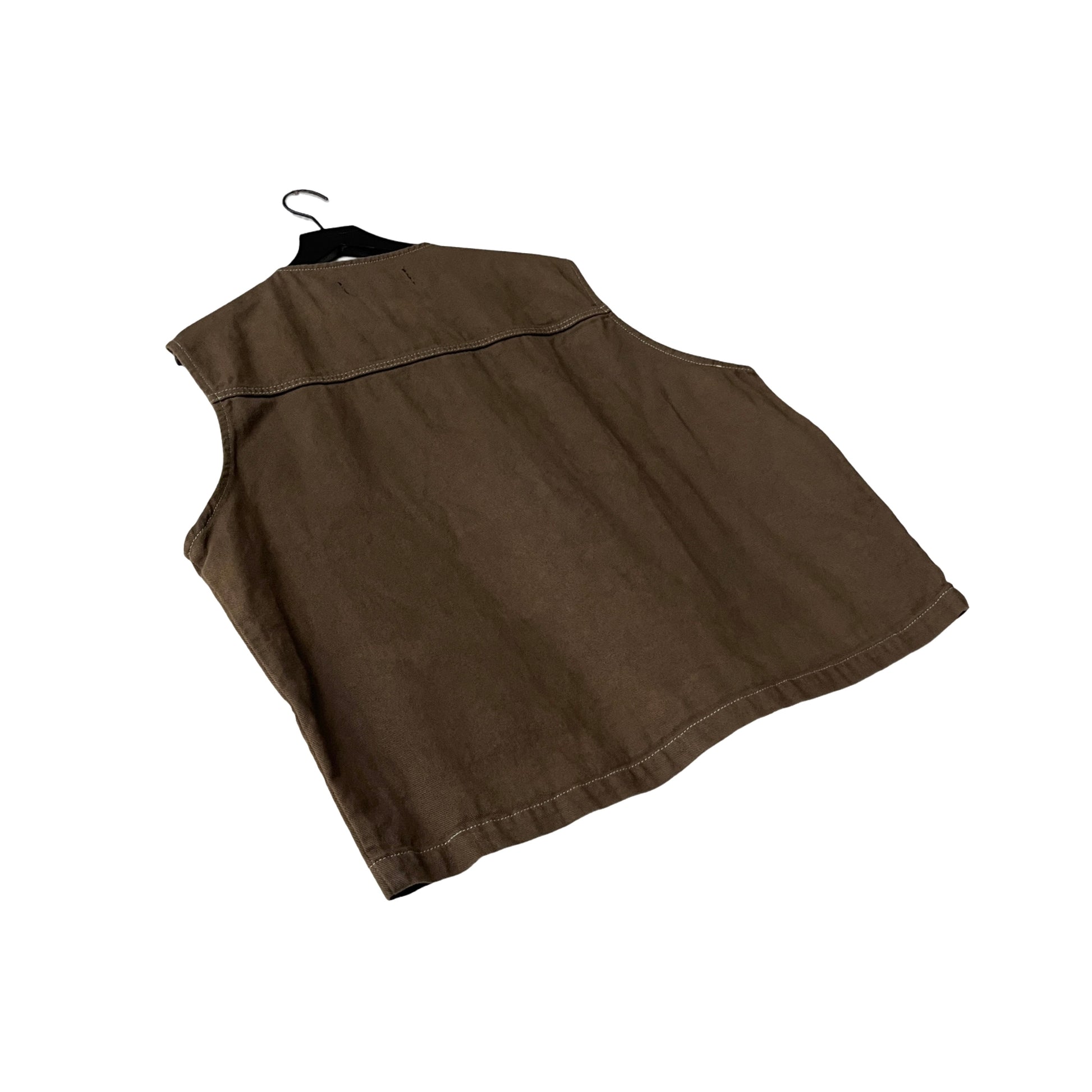 This canvas chore vest has a lightweight, minimalist structure, and is a great compliment layer for pairing with a tee, crewneck, hoodie, or even as a midlayer piece underneath a larger coat.