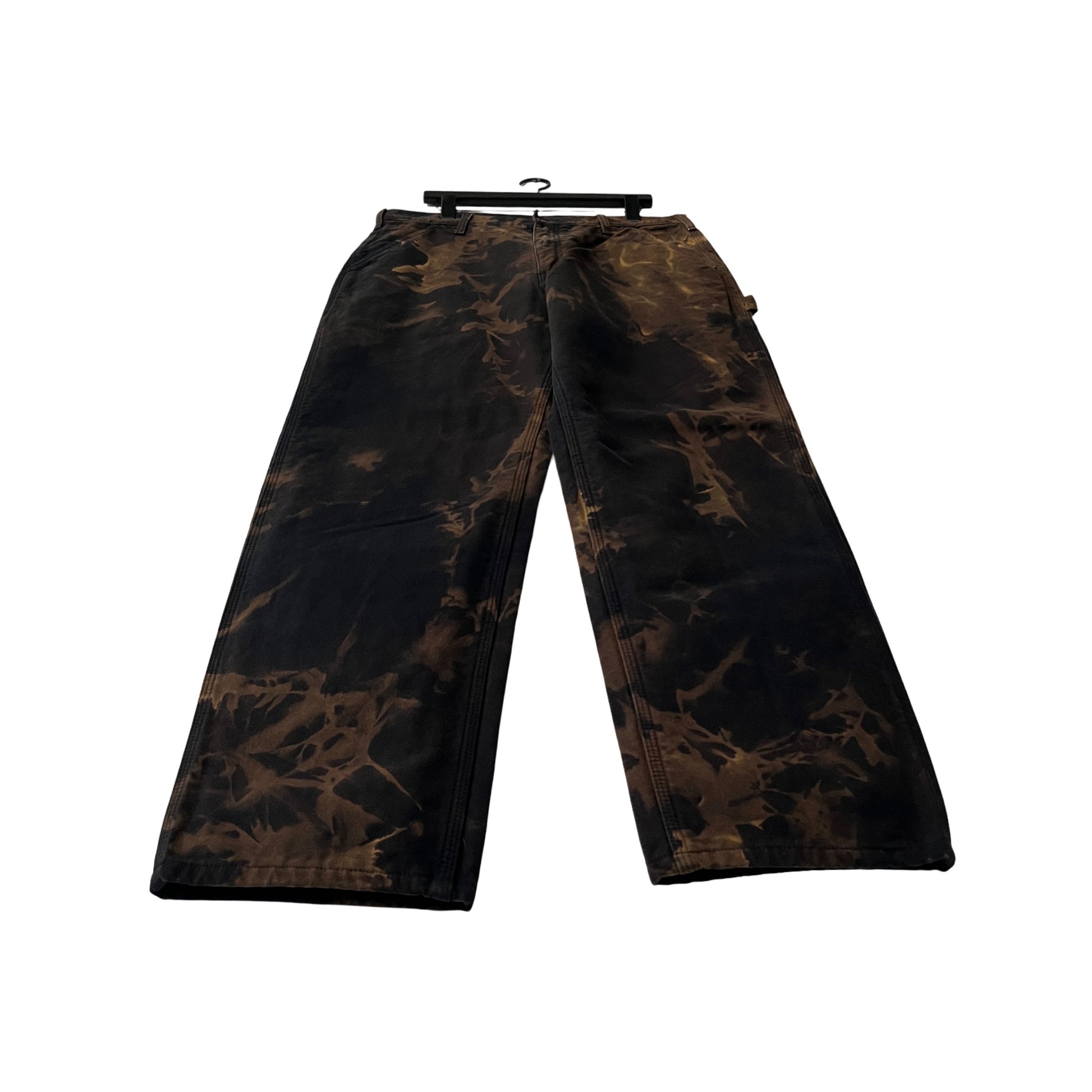 This is a customized, 1 of 1 pair of Carhartt loose fit denim work pants. Pants have durable triple stitch construction and a soft cotton lining.