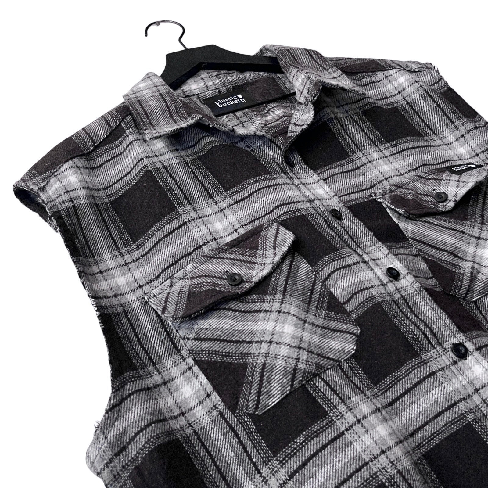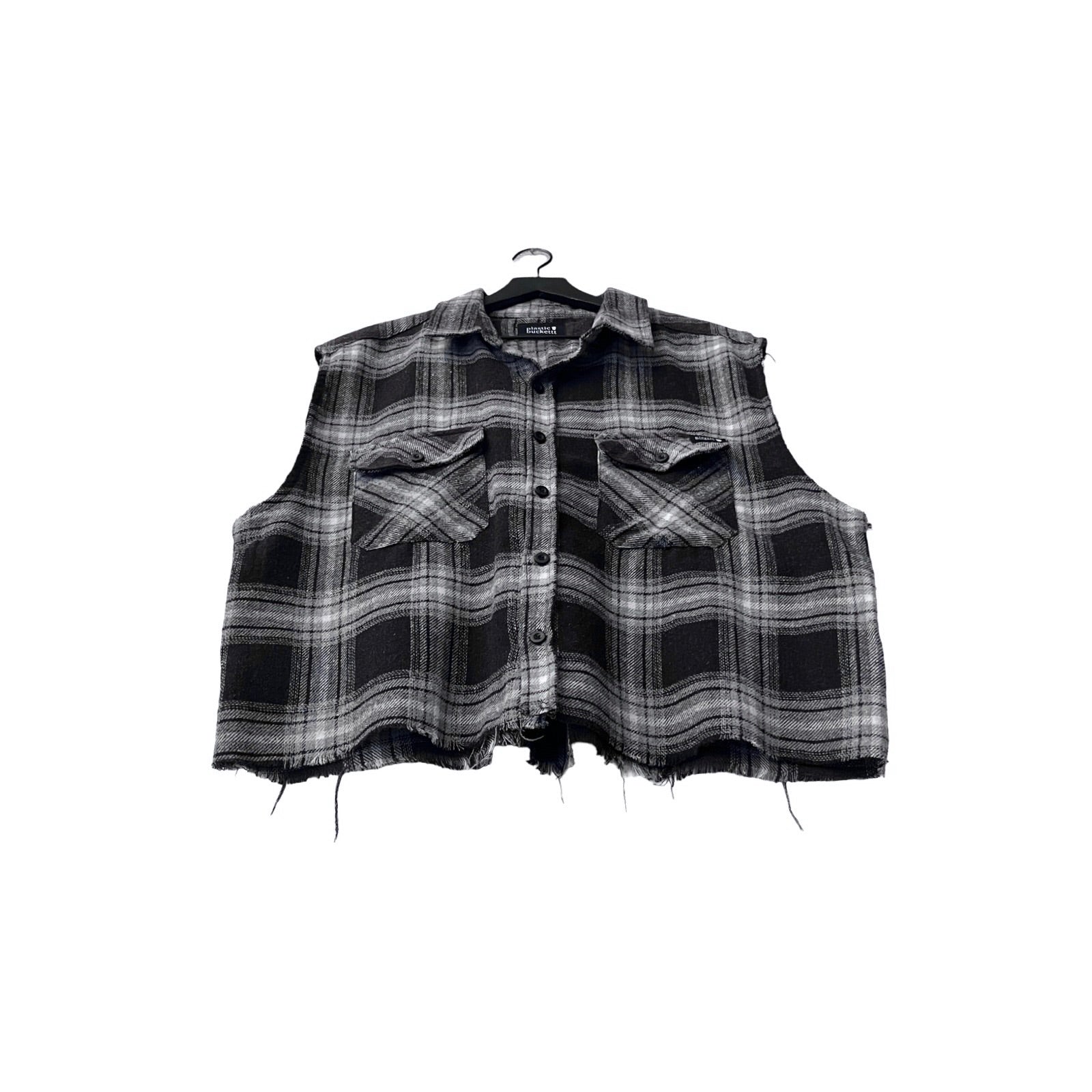 Cropped Sleeveless Plaid Shirt in Grunge / MULTIPLE SIZES