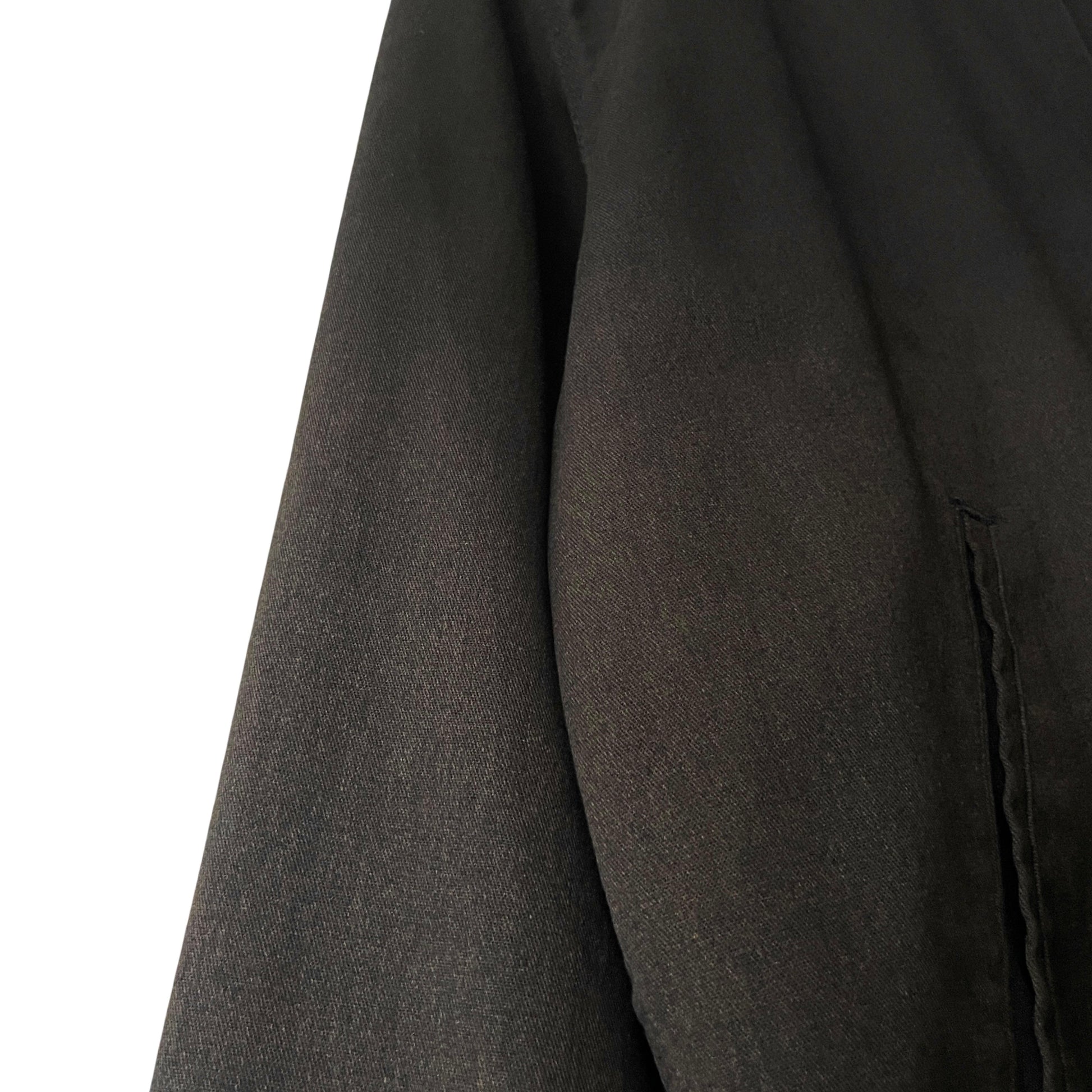 The jacket started as solid black, before receiving a bleach gradient treatment. The finish is a smooth gradient from the black shoulders and chest to a muted brown torso and waist.