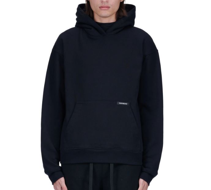 The hoodie has a minimalist design, with only a small branded signoff on the kangaroo pocket.